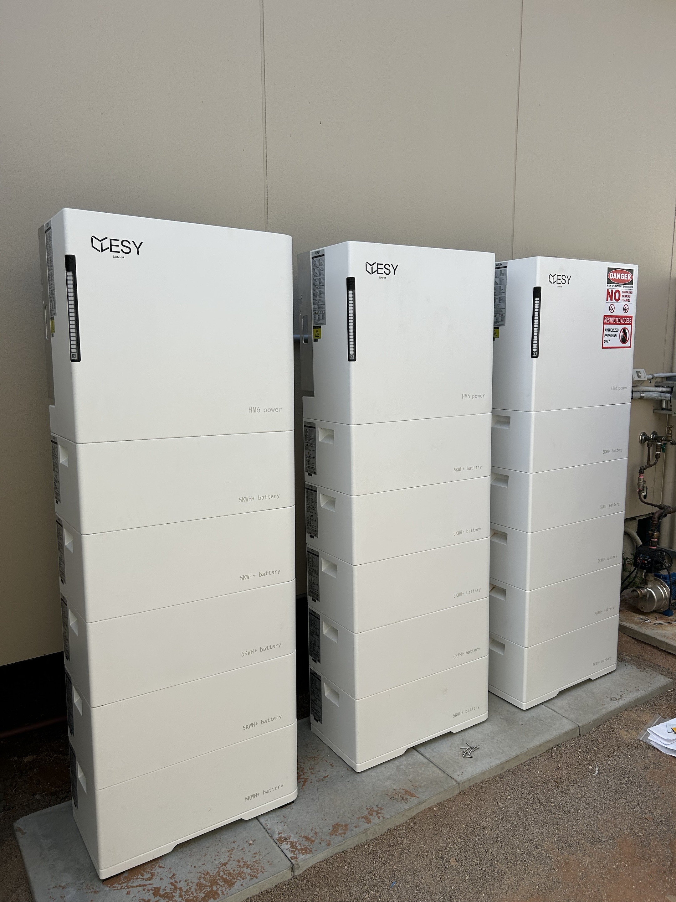 - قامت مزرعة ألبان في فيكتوريا بتركيب نظامين من HM6-15، كل منهما مزود بعاكس بقدرة 6 كيلوواط وثلاث بطاريات، بسعة تخزين إجمالية تبلغ 30 كيلوواط ساعة.
