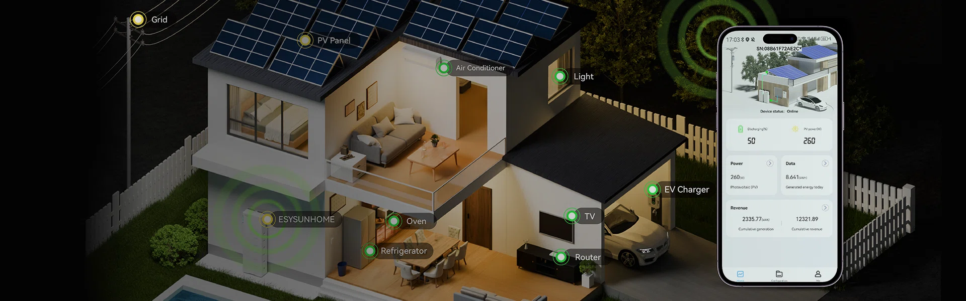 The ESYSUNHOME APP provides unmatched visibility into your energy ecosystem. Track charging, grid interaction, and AI-driven forecasting with minute-by-minute precision. With proactive alerts and intelligent insights, you can maximize savings and elevate performance with absolute confidence.